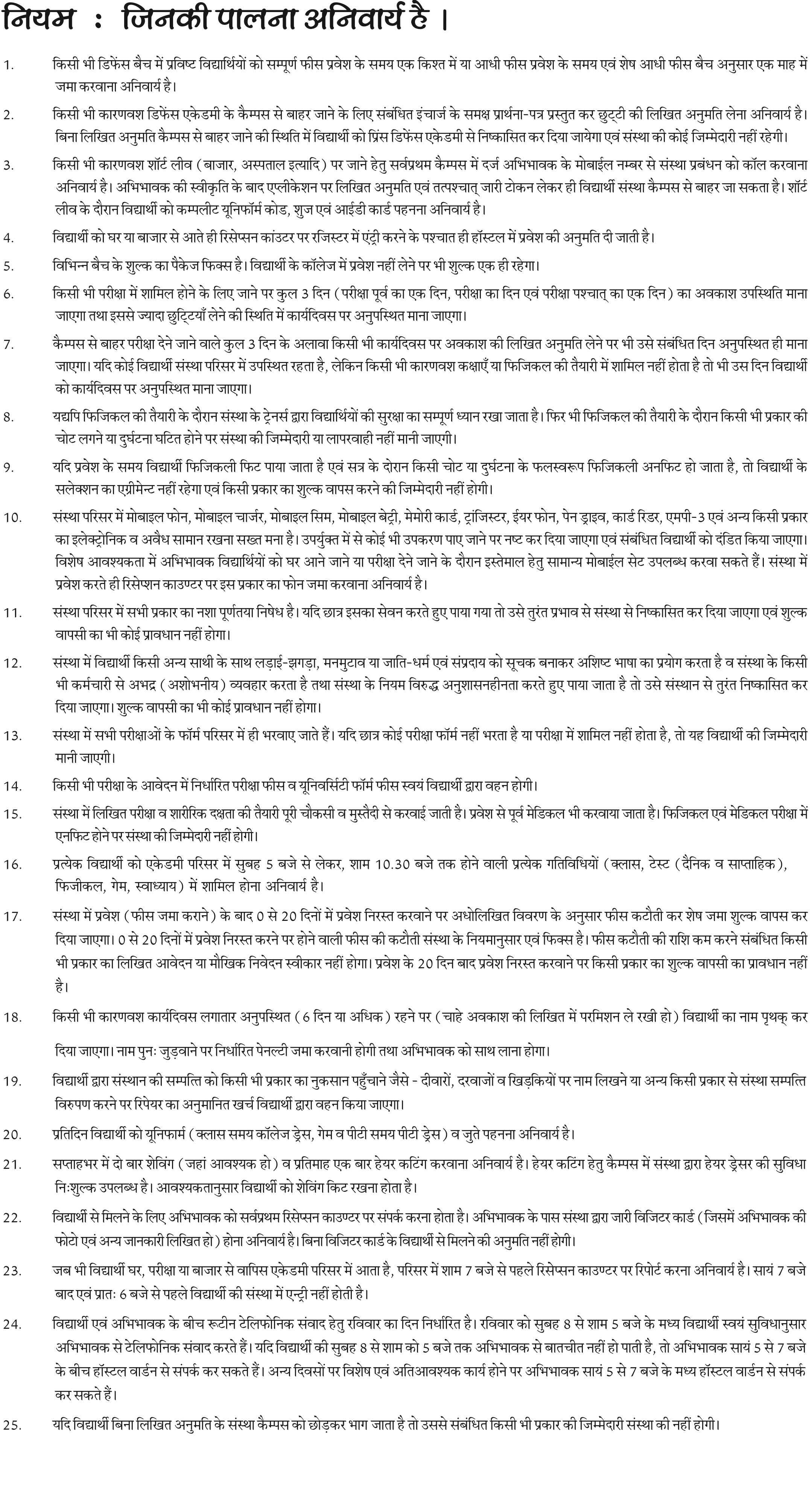 Defence Academy Rules